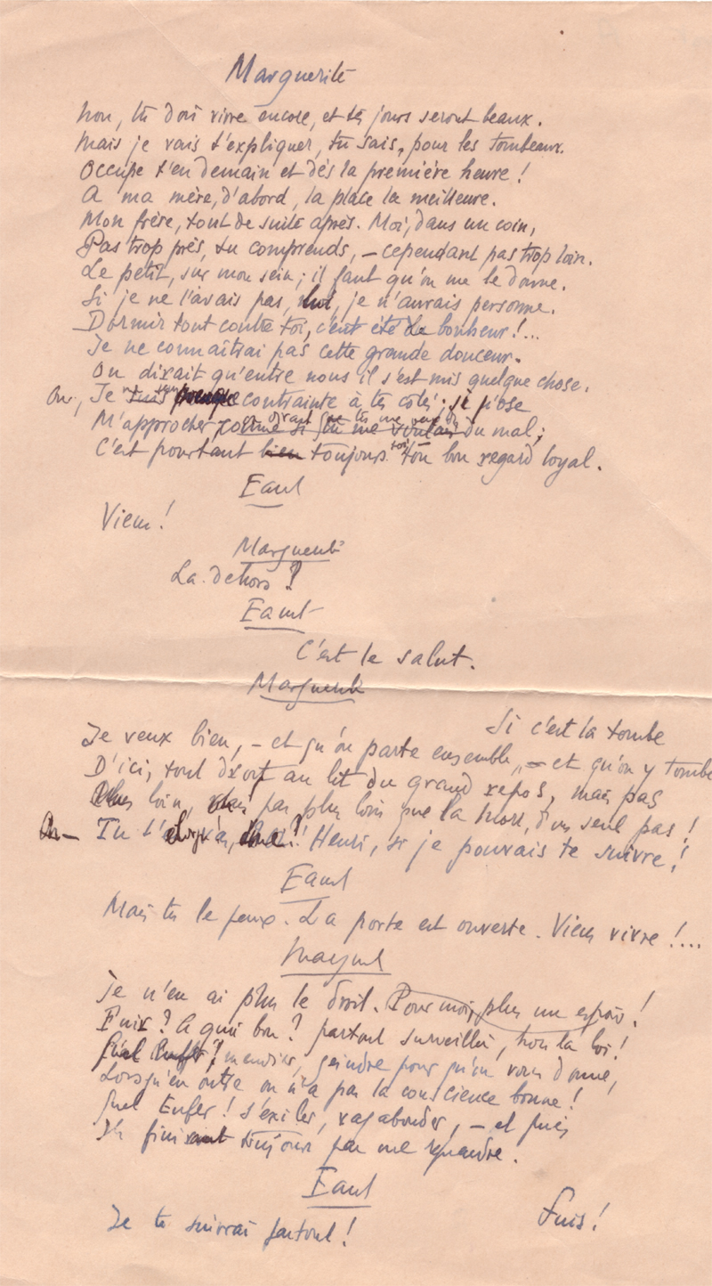 Dès le départ de son travail, il était évident que la reconstruction du manuscrit, formé de documents épars et difficilement lisibles, allait se faire sous le signe de la scène :
